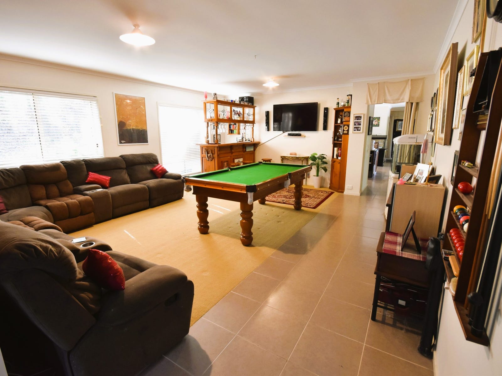Three generously sized living areas offer versatility for family activities, including a dedicated rumpus room and a cozy lounge area, perfect for relaxation or as a sizable home office. Outside, a separate double garage provides ample storage space, complemented by additional parking along the side driveway. A 3x3 shed and a recently added outdoor Spa/Jacuzzi, accommodating up to 6 people, offer the ultimate relaxation retreat, fully enclosed and sheltered for year-round enjoyment.