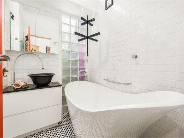 - Downstairs bathroom has an elegant freestanding bath plus separate shower and heated towel rails.