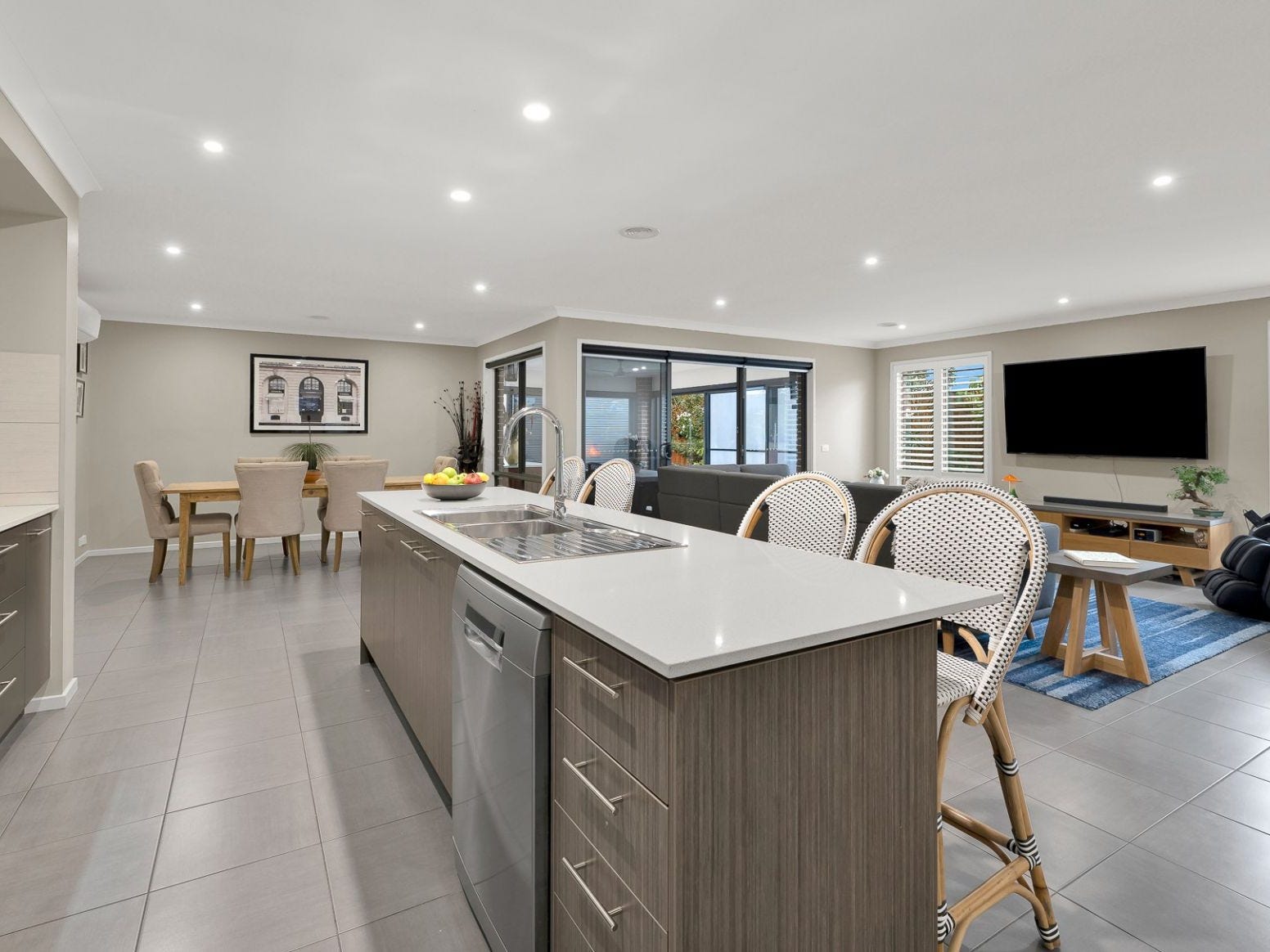 * Open-plan living, family, dining and lounge rooms, plus fully enclosed alfresco