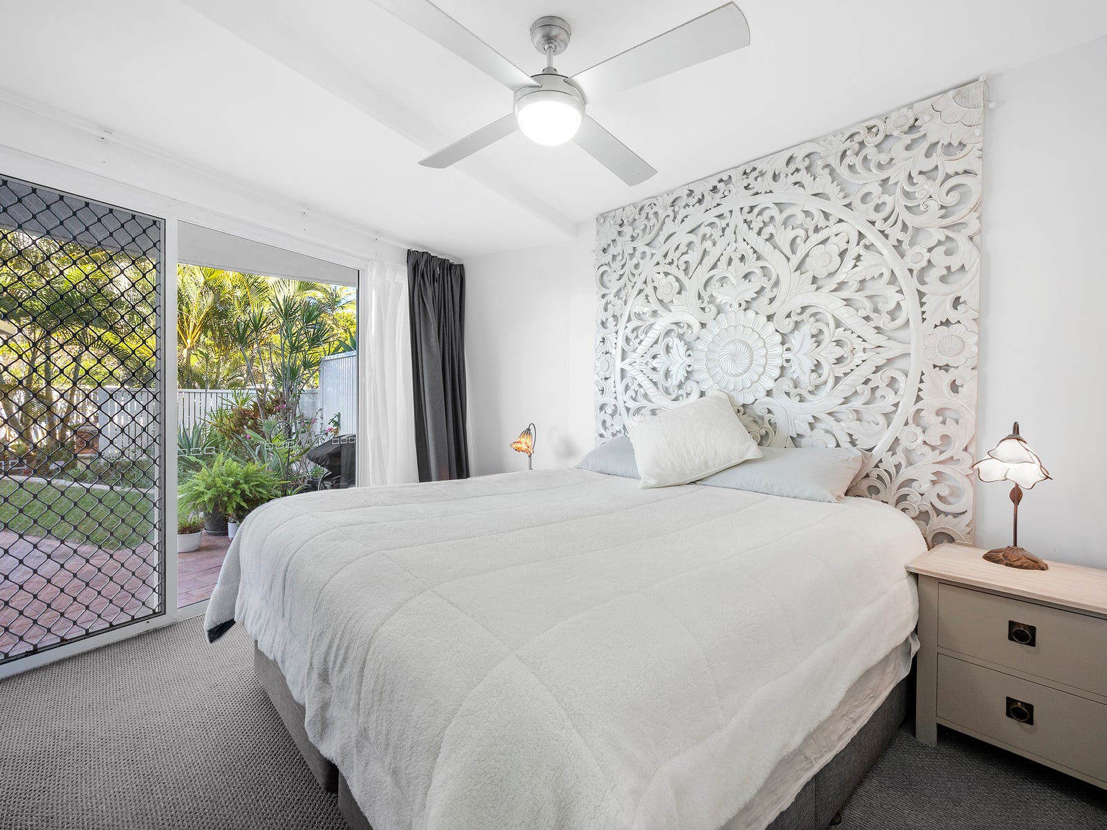 two bedrooms with ceiling fans and glass & security screen sliding doors to the courtyard