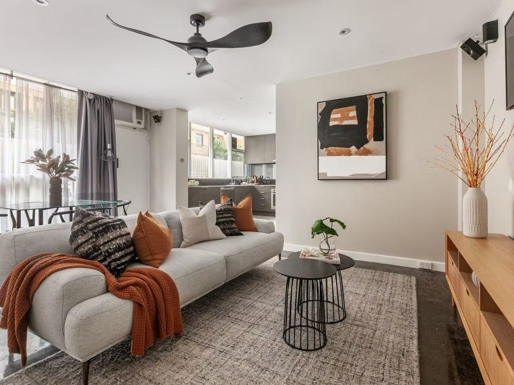 Inside, it's a cosy and comfortable apartment: an open-plan living area, a practical kitchen with island bench, a bright bedroom with a large built-in wardrobe, and a compact bathroom. Heating and cooling, energy-efficient ceiling fans, surround sound wiring, and secure entry add to the comfort. The building itself offers CCTV, dual lifts, bike storage, laundry facilities, and gated access directly to your parking space.