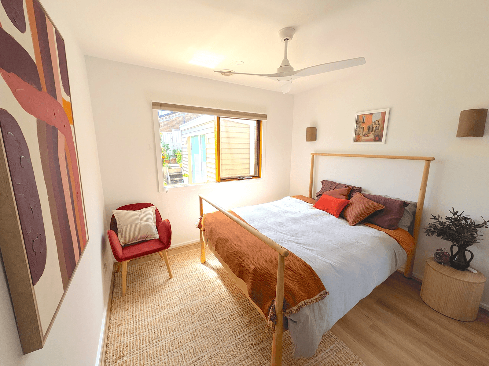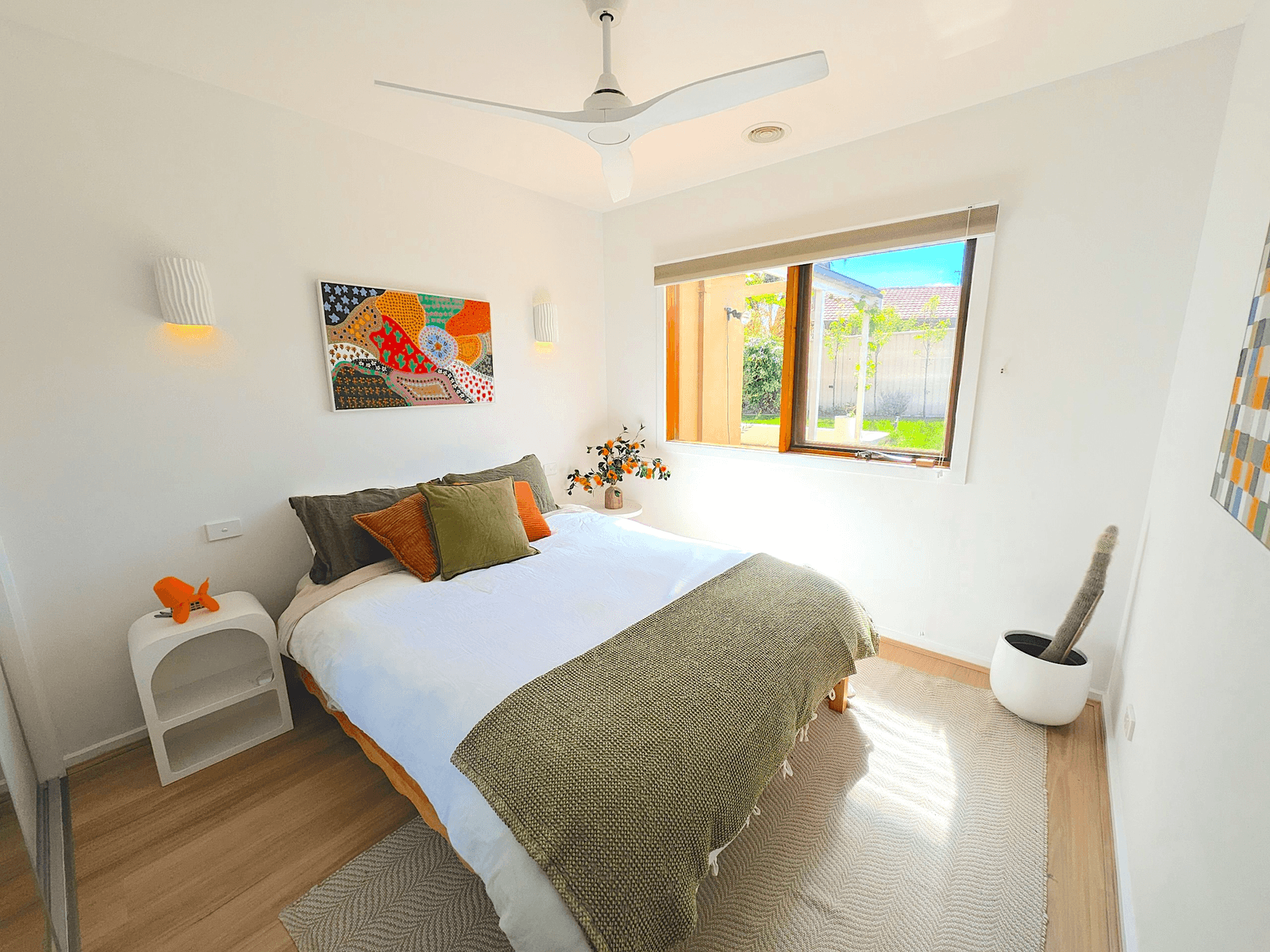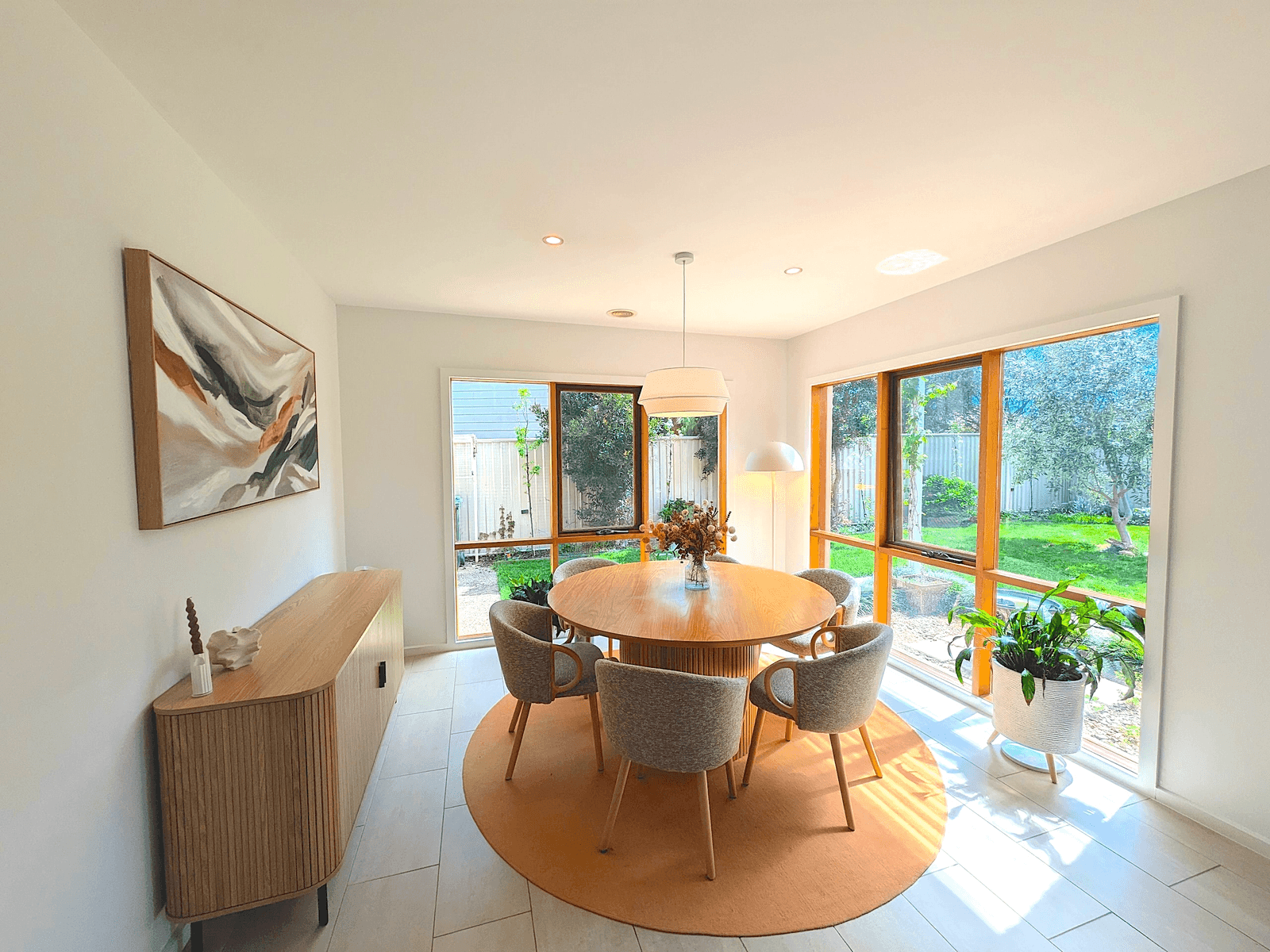 Outdoors, an expansive entertaining area overlooks secure gardens ringed with leafy pear trees, established fruit trees and a thriving veggie patch.