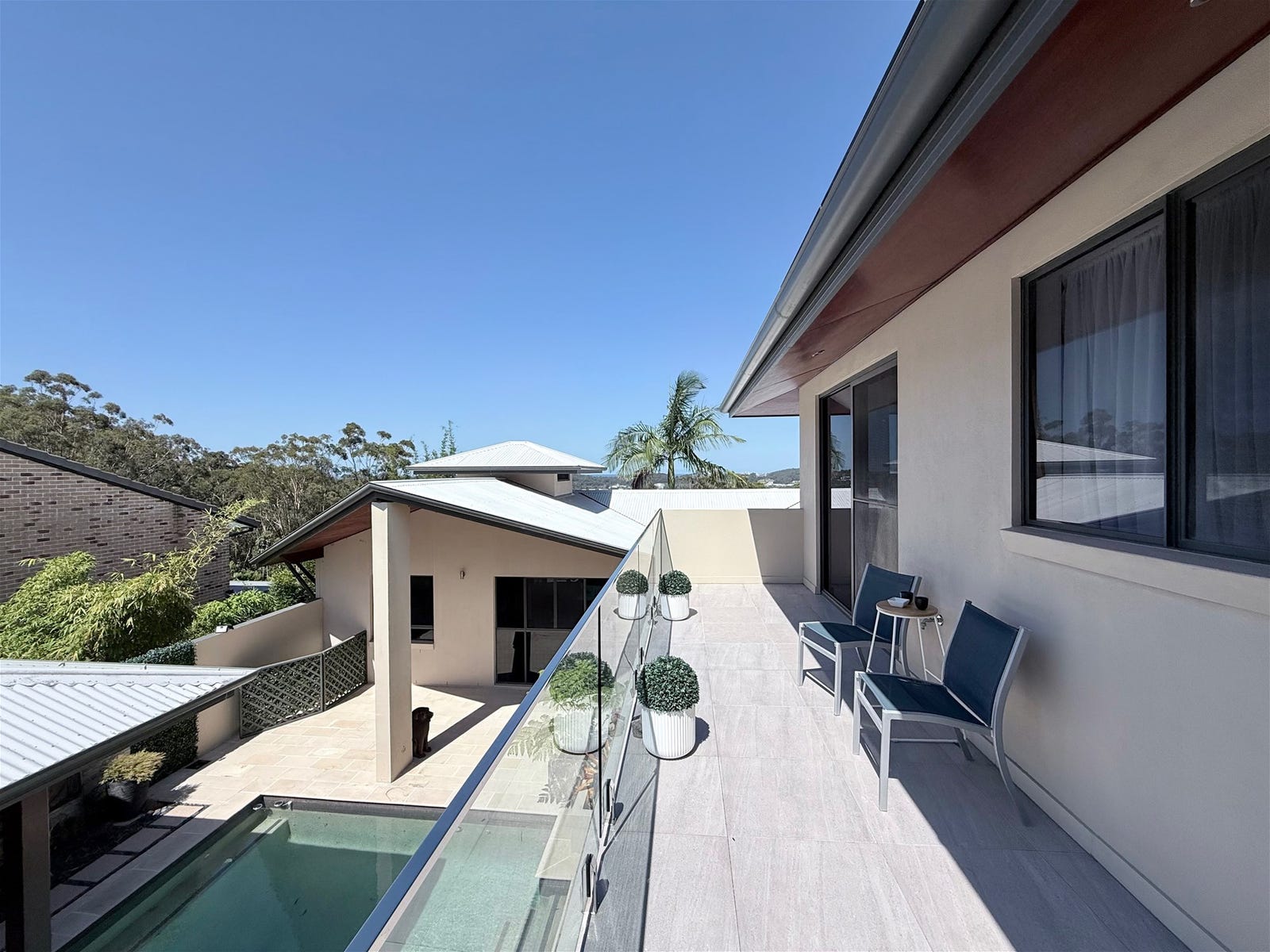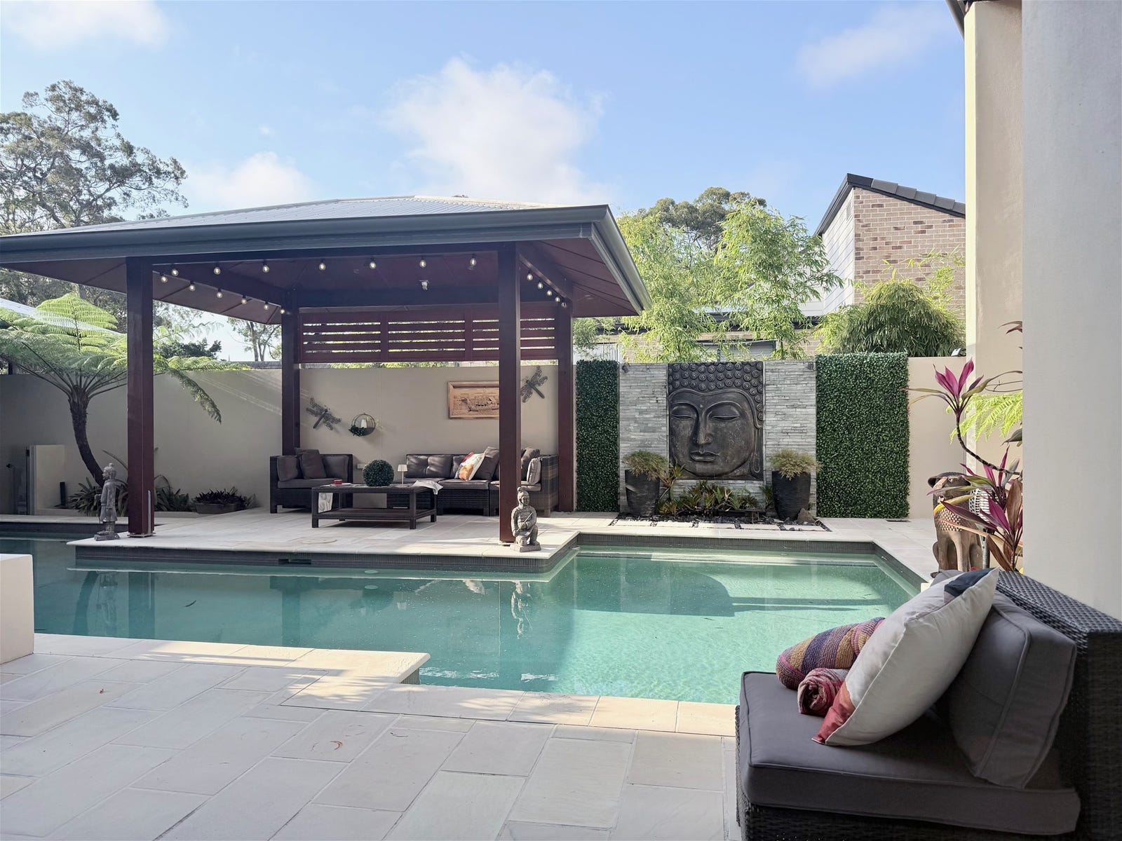 The private, resort-style 11m salt water pool and Bali pavilion are surrounded by sandstone paving and lush tropical garden beds and is the focal point and entertainment centrepiece of the wraparound ground floor design which also captures ocean, expansive forest and urban views.