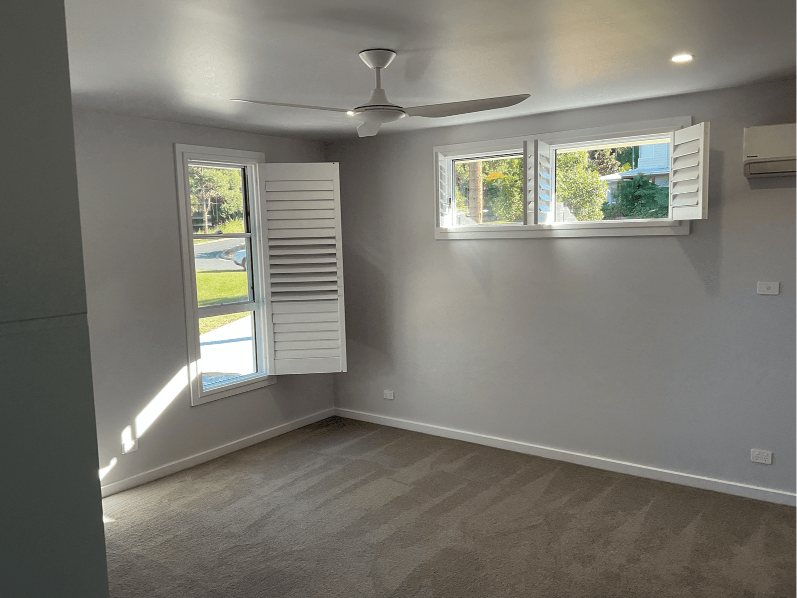 Air-conditioning, ceiling fans, and plantation shutters throughout